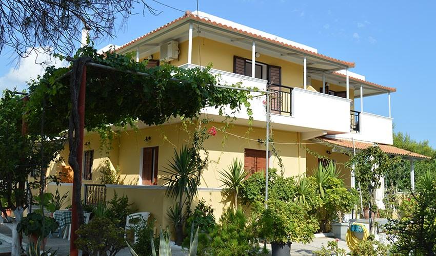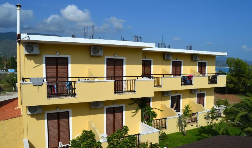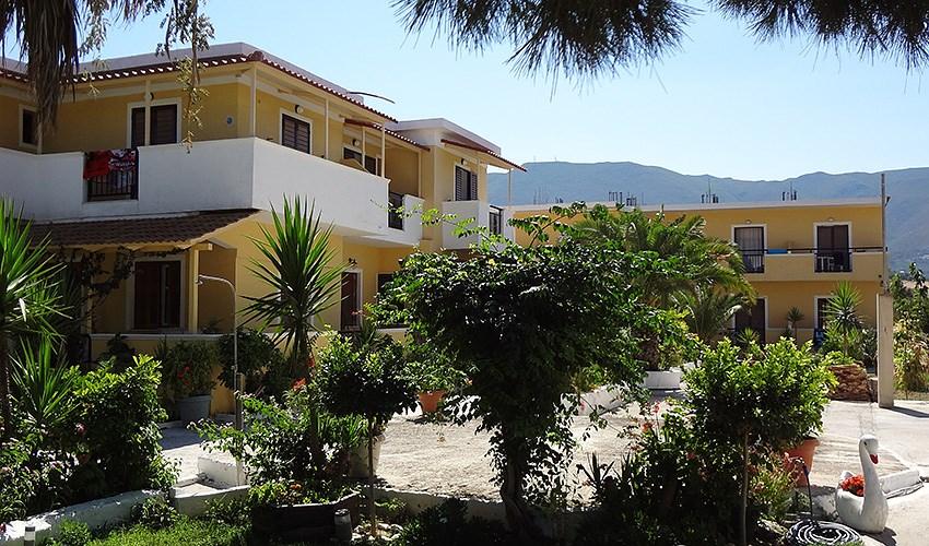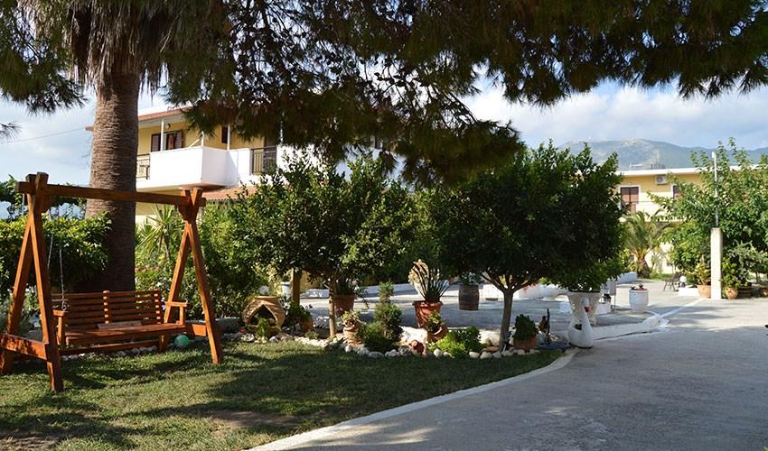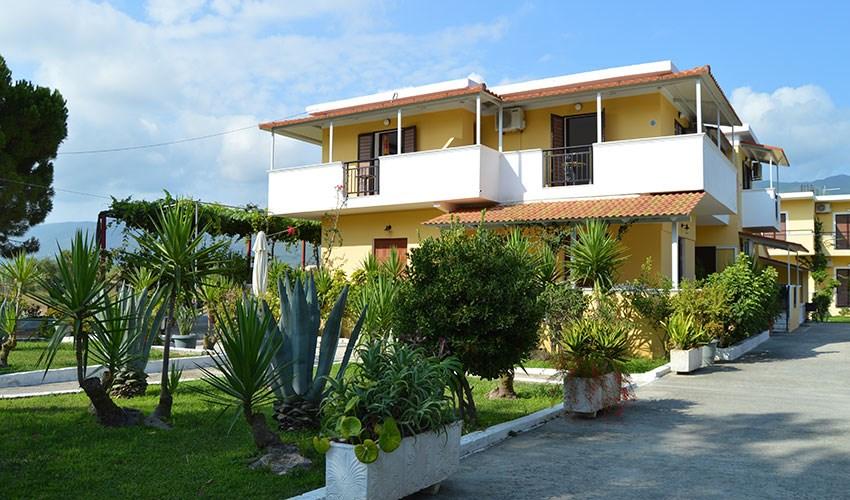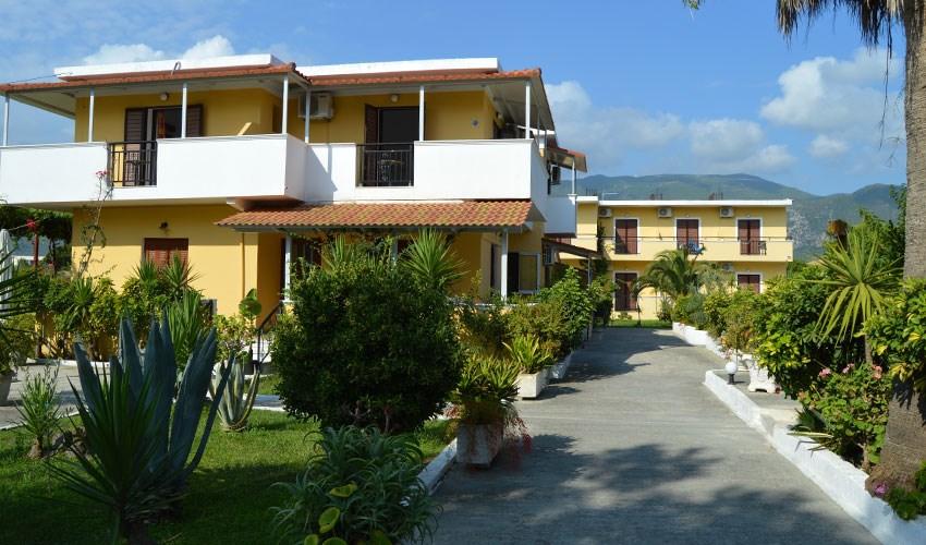 Příjemný menší rodinný komplex apartmánů a studií, které jsou jednoduše a účelně vybaveny, se nachází v pěkné udržované zahradě v klidném prostředí letoviska Alykanas, pouhých 70 m od písečné pláže (lehátka a slunečníky za poplatek). Do centra letoviska Alykanas se spoustou obchůdků, taveren a barů dojdete pohodlnou procházkou během několika minut (300 m). Nedaleko studií najdete menší farmu, kde nabízejí velmi pěknou vyjížďku na koních dospělým i dětem, dokonce i do moře. Hlavní město Zakynthos (14 km) je dobře dostupné místní dopravou. Doporučujeme klientům, kteří vyhledávají klidnou dovolenou v krásném prostředí poblíž moře, zejména pak rodinám s dětmi díky velmi pozvolnému vstupu do moře.