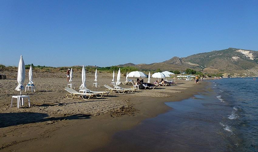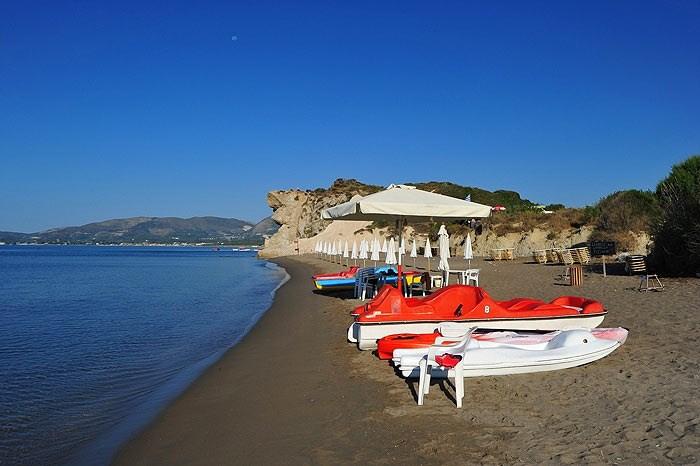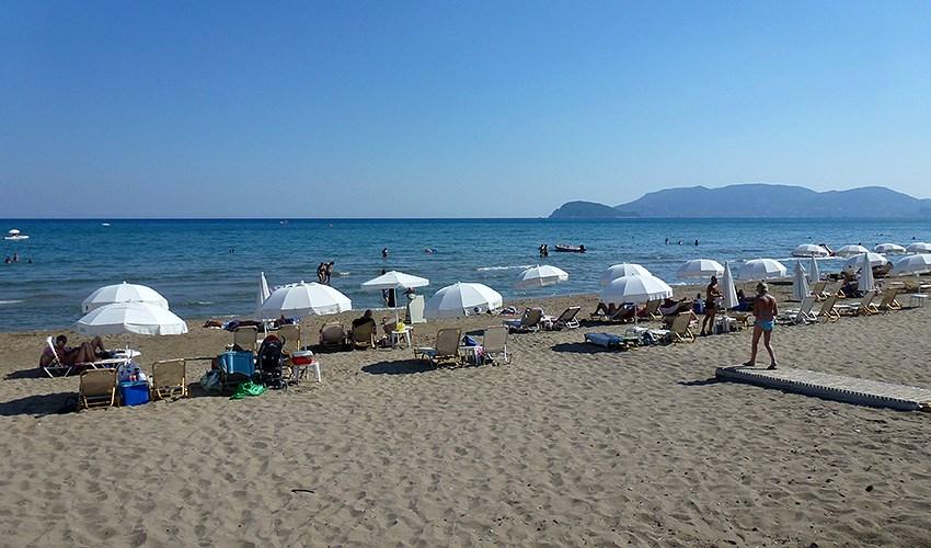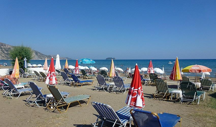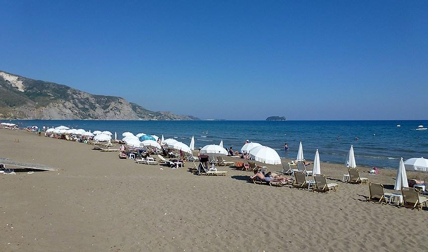| Příjemné menší letovisko ležící necelých 5 km jižně od hlavního města. Jak v Kalamaki, tak ve vedlejším letovisku Laganas, které je snadno dosažitelné příjemnou procházkou po pláži, najdete množství obchodů, taveren i večerní zábavy. Písečná pláž s pozvolným vstupem do moře patří k nejkrásnějším na ostrově. Díky velmi teplému moři se v blízkosti Kalamaki vyskytují obří želvy Caretta-Caretta, které zde kladou svá vejce do písku. Pláž v Kalamaki se tedy na noc zavírá a z důvodu výskytu želv je v noci také zrušen letecký provoz na nedalekém letišti. |
