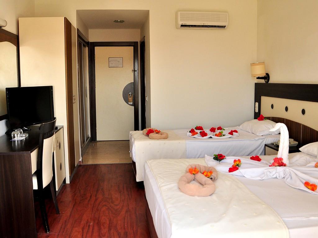 SLUŽBY: bazén so slnečníkmi a ležadlami • hlavná reštaurácia • bar • animačné programy (2x/týždeň) • turecký kúpeľ • sauna • biliard • TV kútik • wifi • za poplatok: masáž • procedúry tureckého kúpeľa • lekárska služba • práčovňa • požičovňa áut • vodné športy na pláži
