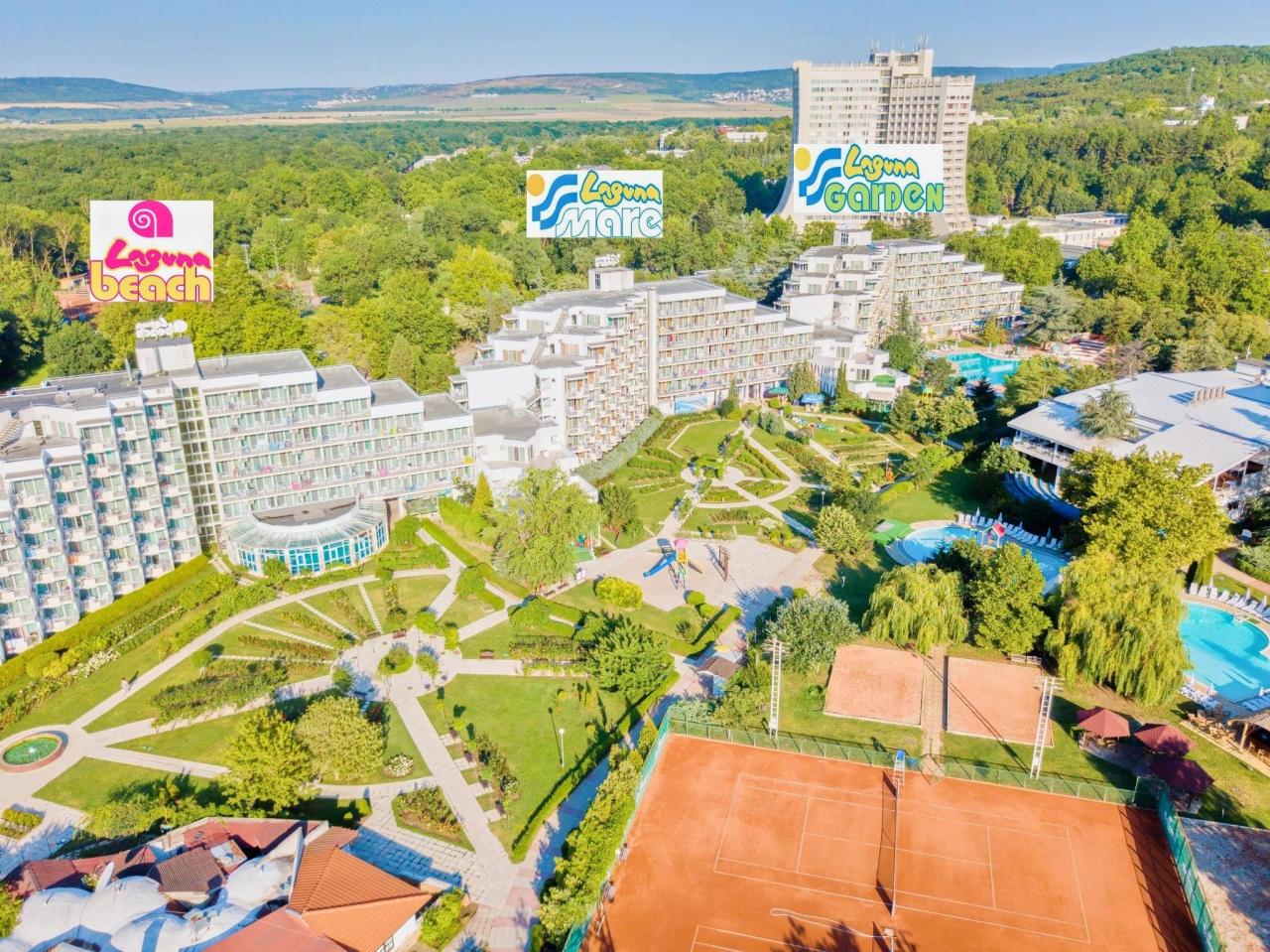 | Starší hotel Laguna Mare sa nachádza v centrálnej časti letoviska Albena, ktorá je obľúbená nielen pre svoju prírodu. Leží iba cca 50 metrov od vyhlásenej pešej zóny a široké piesočné pláže ocenené Modrou vlajkou. V okolí hotela nájdete obchody, reštaurácie, aj detské atrakcie. Hotel patrí do komplexu hotelov Laguna (Laguna Mare, Laguna Garden a Laguna Beach). |