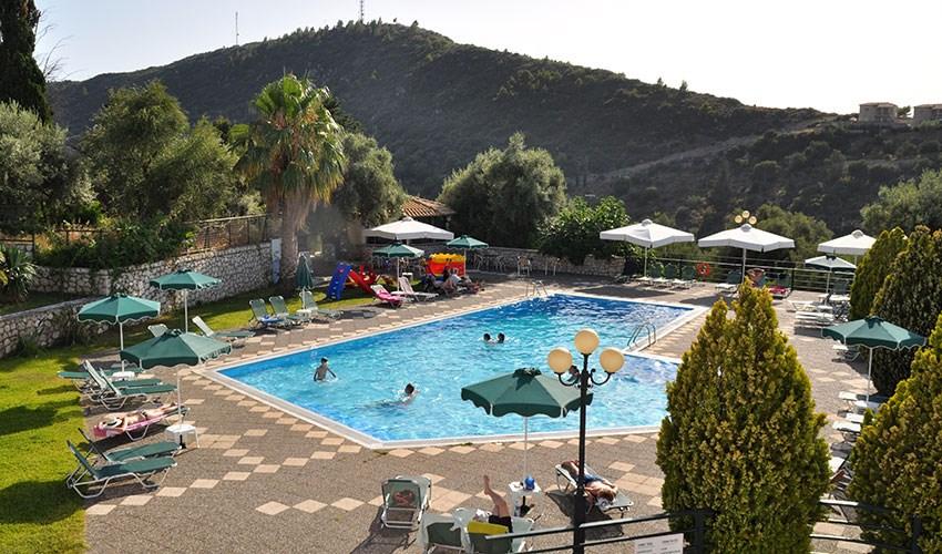 | Hotel stojí přímo nad oblíbeným letoviskem Agios Nikitas na západní straně ostrova. Jeho velkou předností je klidné prostředí a nádherný panoramatický výhled na městečko a Jónské moře. Hotel svou polohou ve svahu a přístupem k pláži není vhodný pro klienty s omezenou pohyblivostí. Centrum s nákupními možnostmi, tavernami a bary je dostupné 15 minut pěšky, neorganizovaná pláž s průzračně čistou vodou je vzdálena 450 m. Další krásné pláže ostrova jako jsou Pefkoulia nebo Milos se nacházejí v pěší vzdálenosti, na pláž je možné využít také lodní taxi. |