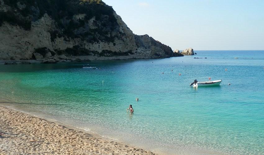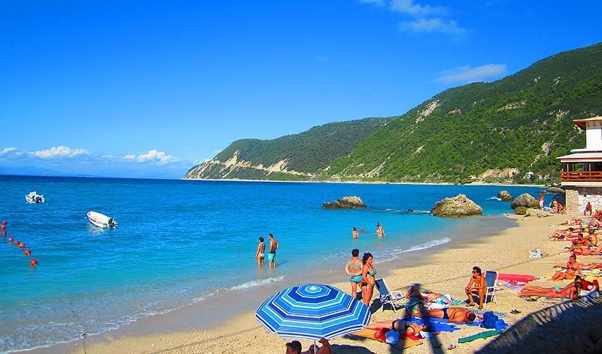 | Oblíbené letovisko Agios Nikitas se nachází na severozápadě ostrova