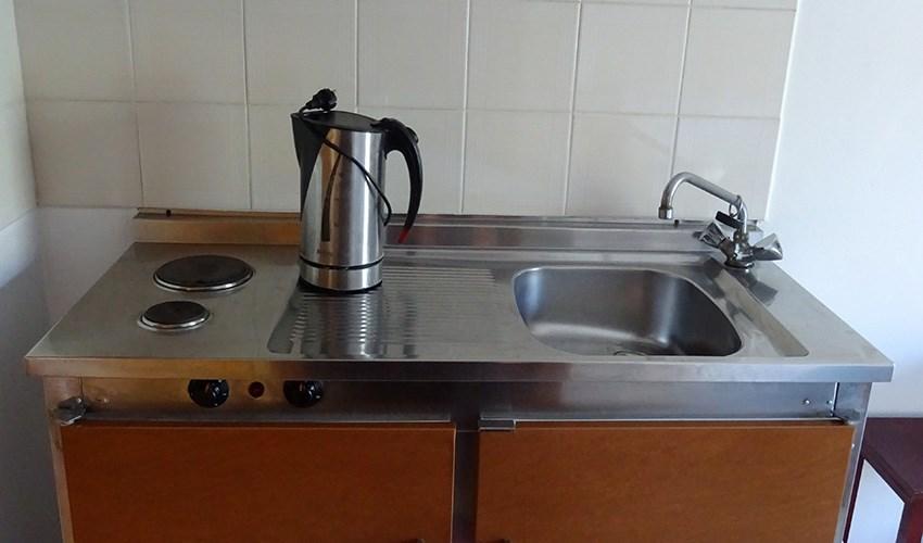 • kuchyňský kout (vařič, lednice, základní nádobí)